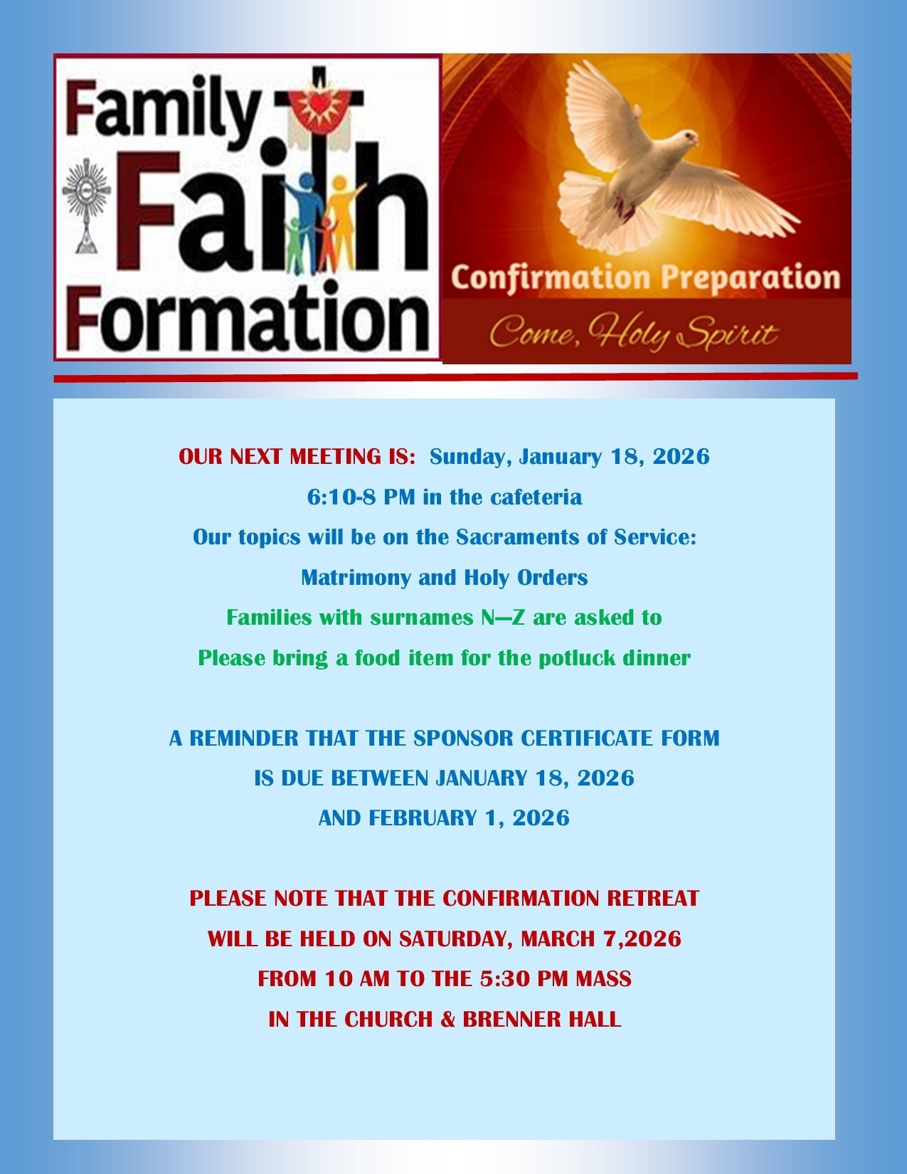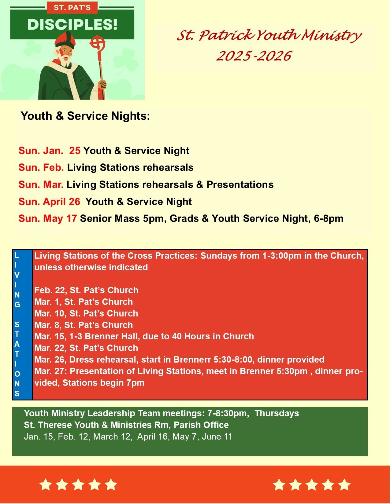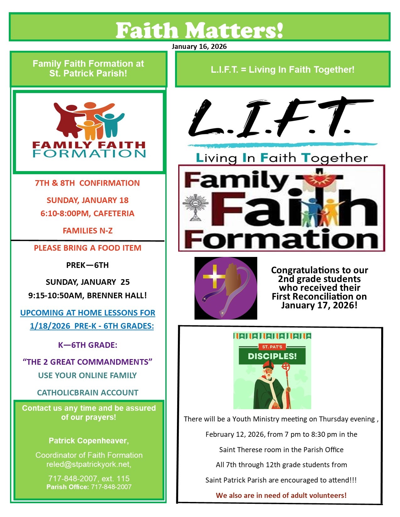 To help families and young people keep informed of upcoming events for Family Faith Formation, Sacraments Preparation, and Youth and Young Adult Ministries, we will post them here on our "Lift" page, updating it regularly. We look forward to seeing you soon!